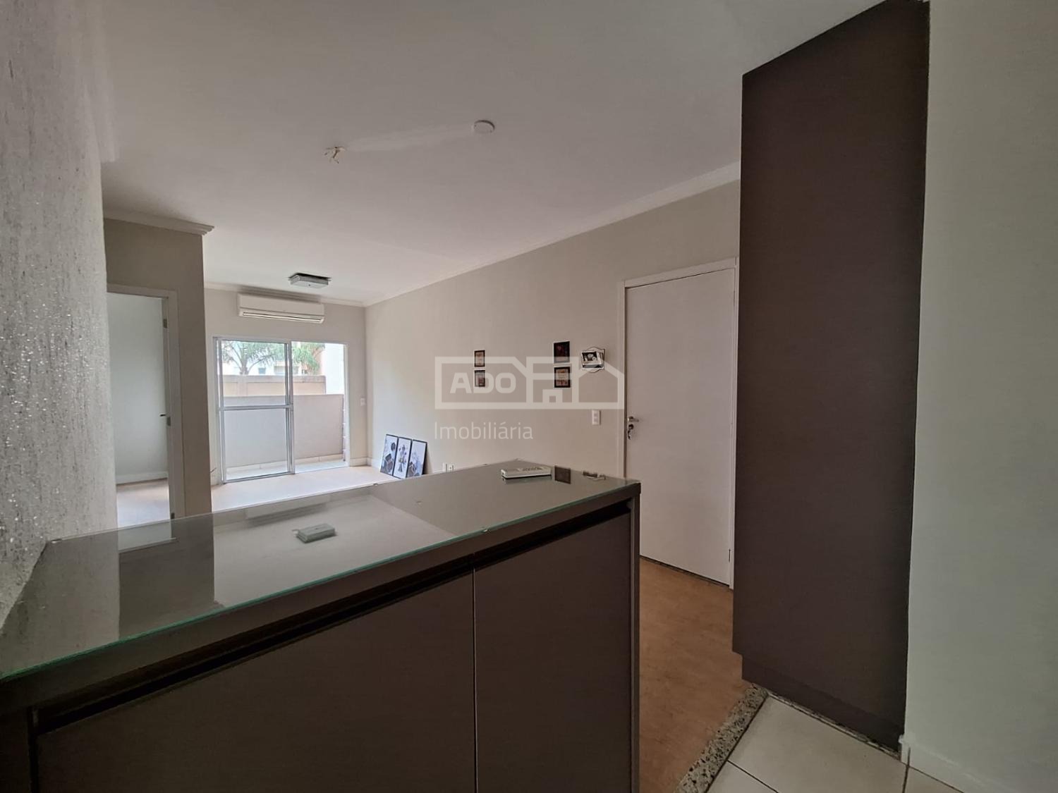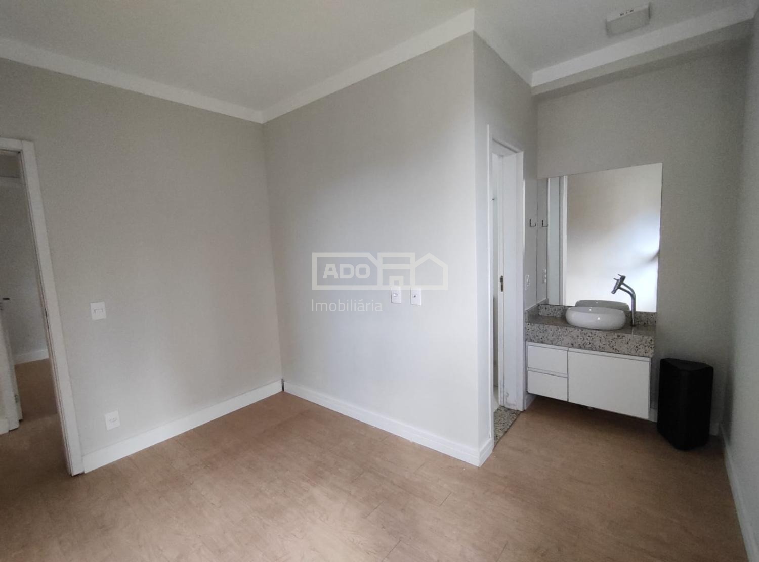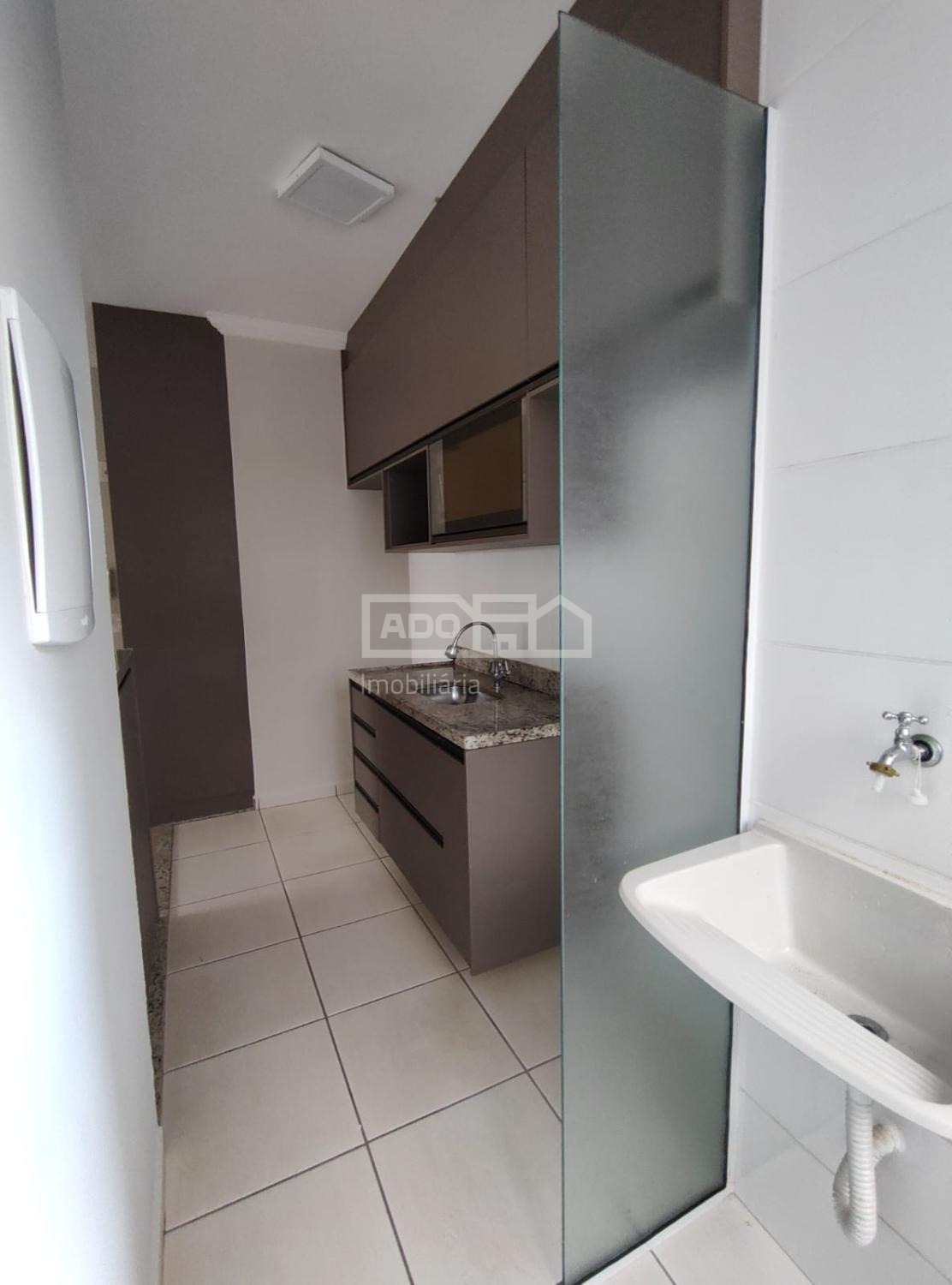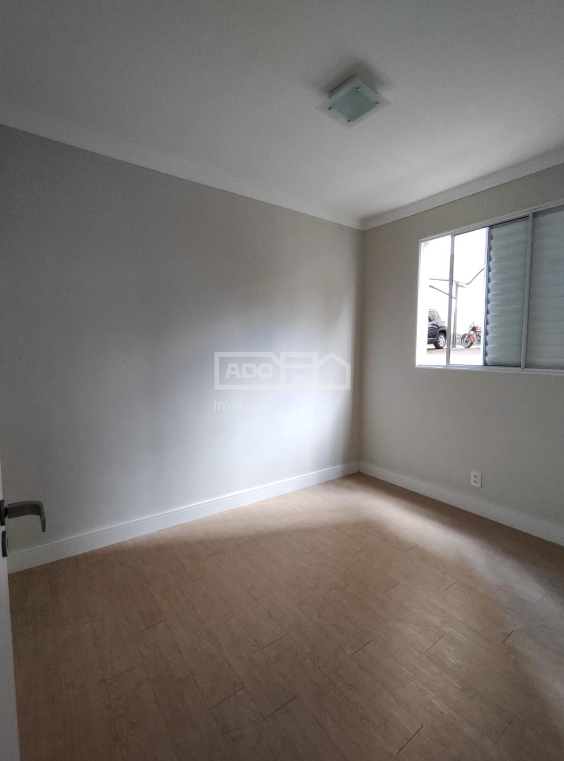 Piso vinílico na sala de jantar, estar e nos dois quartos.