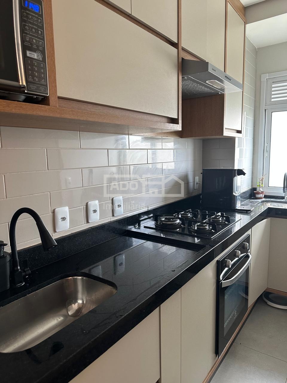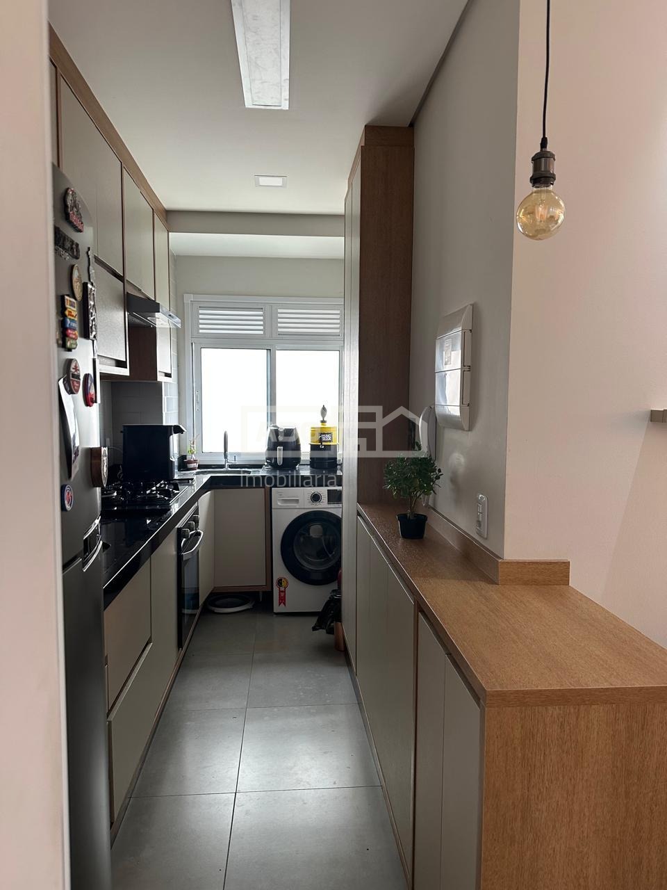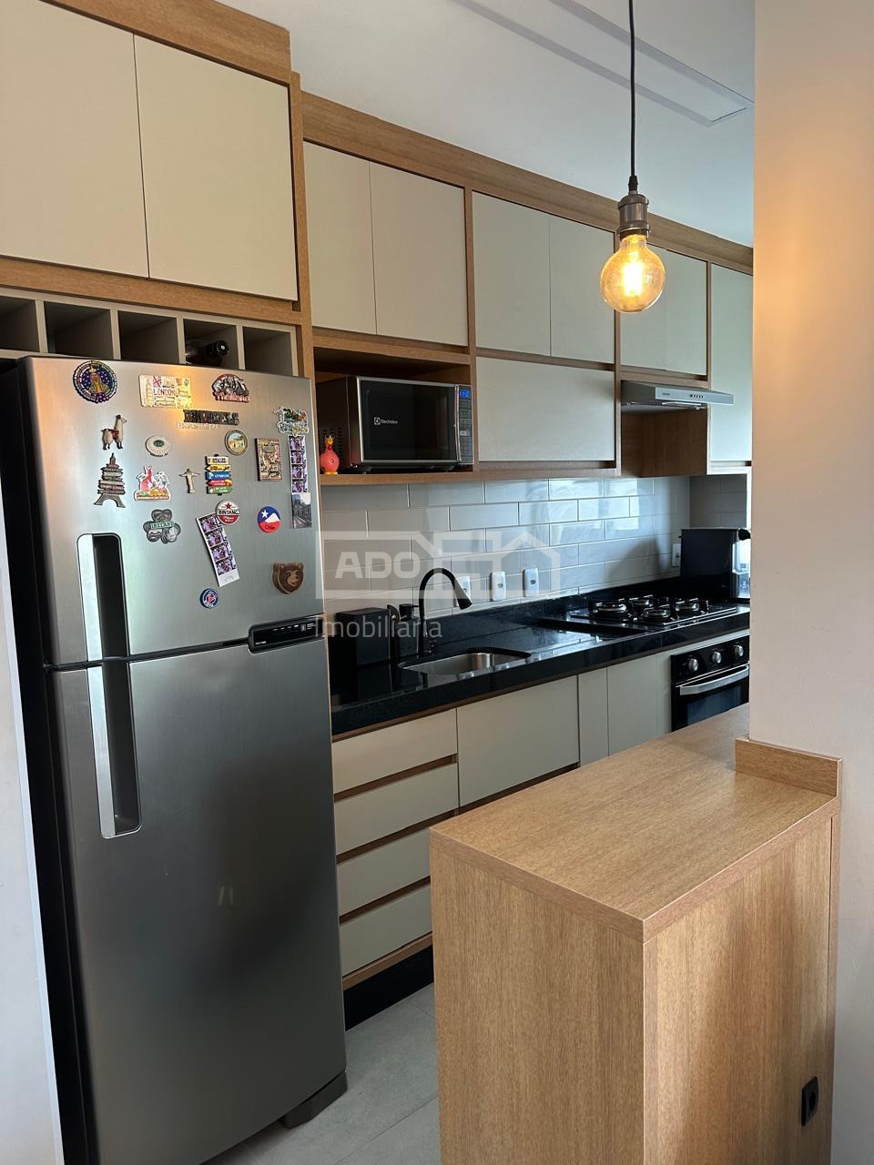 Todo planejado, com ar condicionado, persianas, cortinas, cooktop, forno eletrico e lustres.