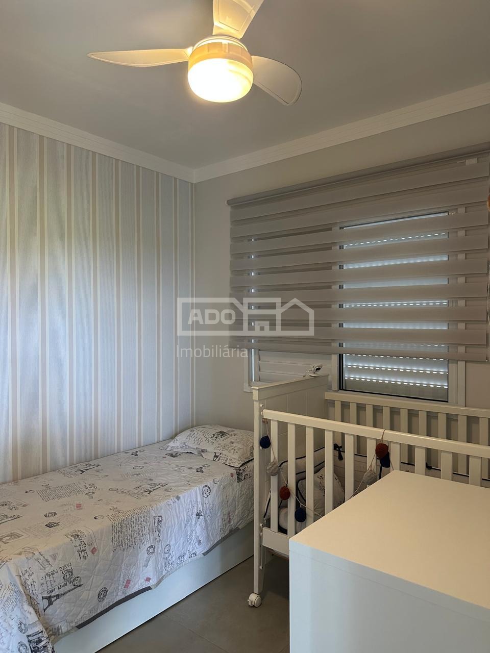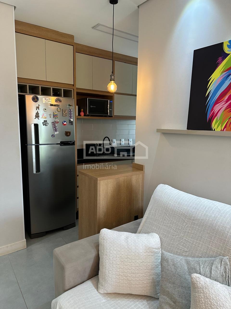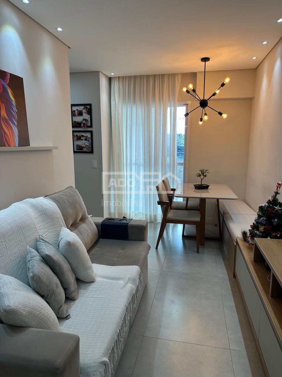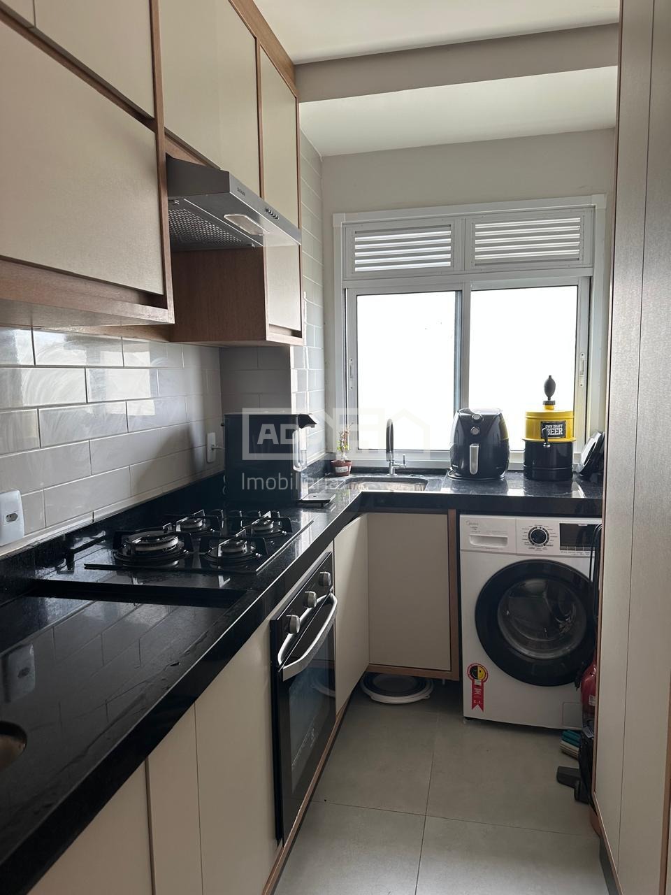 Todo planejado, com ar condicionado, persianas, cortinas, cooktop, forno eletrico e lustres.