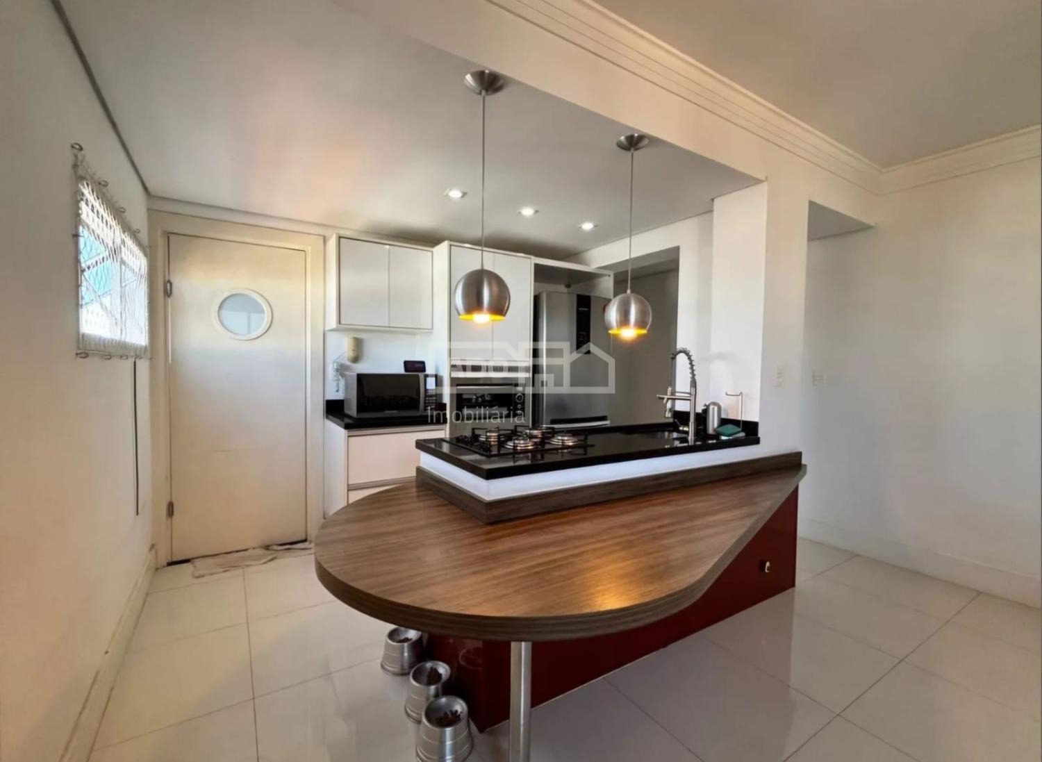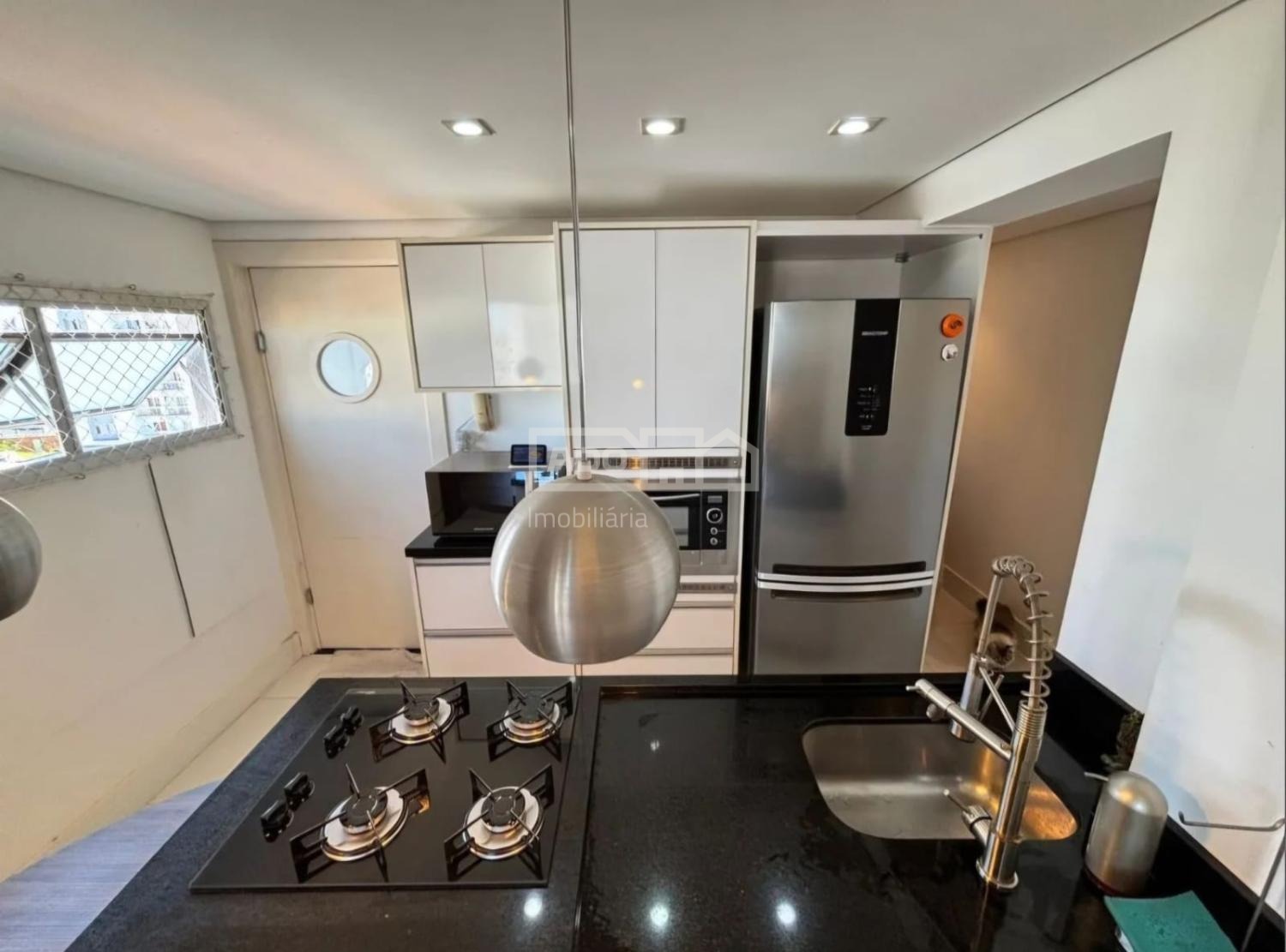 - Cozinha em conceito aberto, integrada à sala