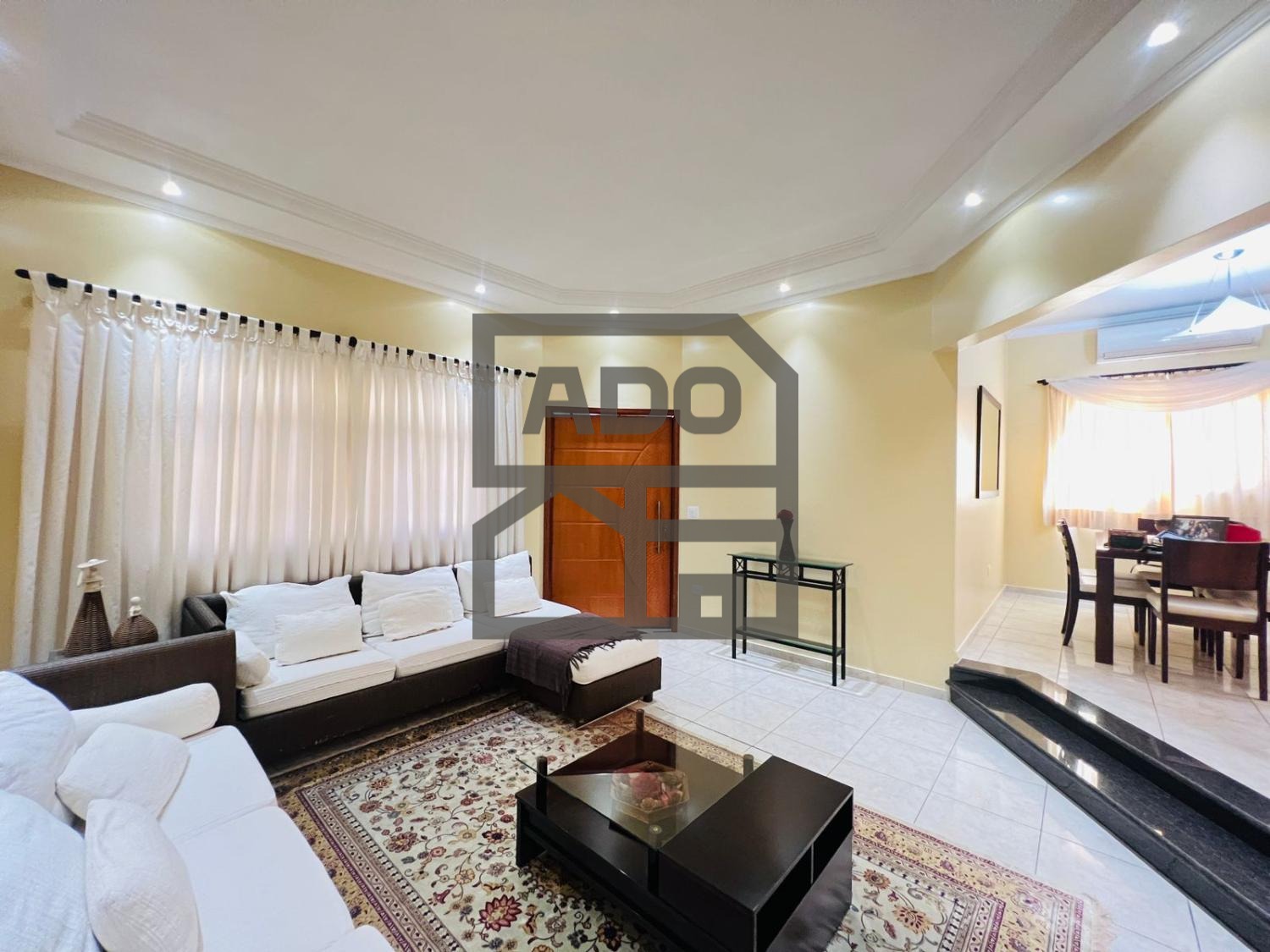 Sala ampla de estar, sala de jantar, area de jardim de inverno com cobertura móvel