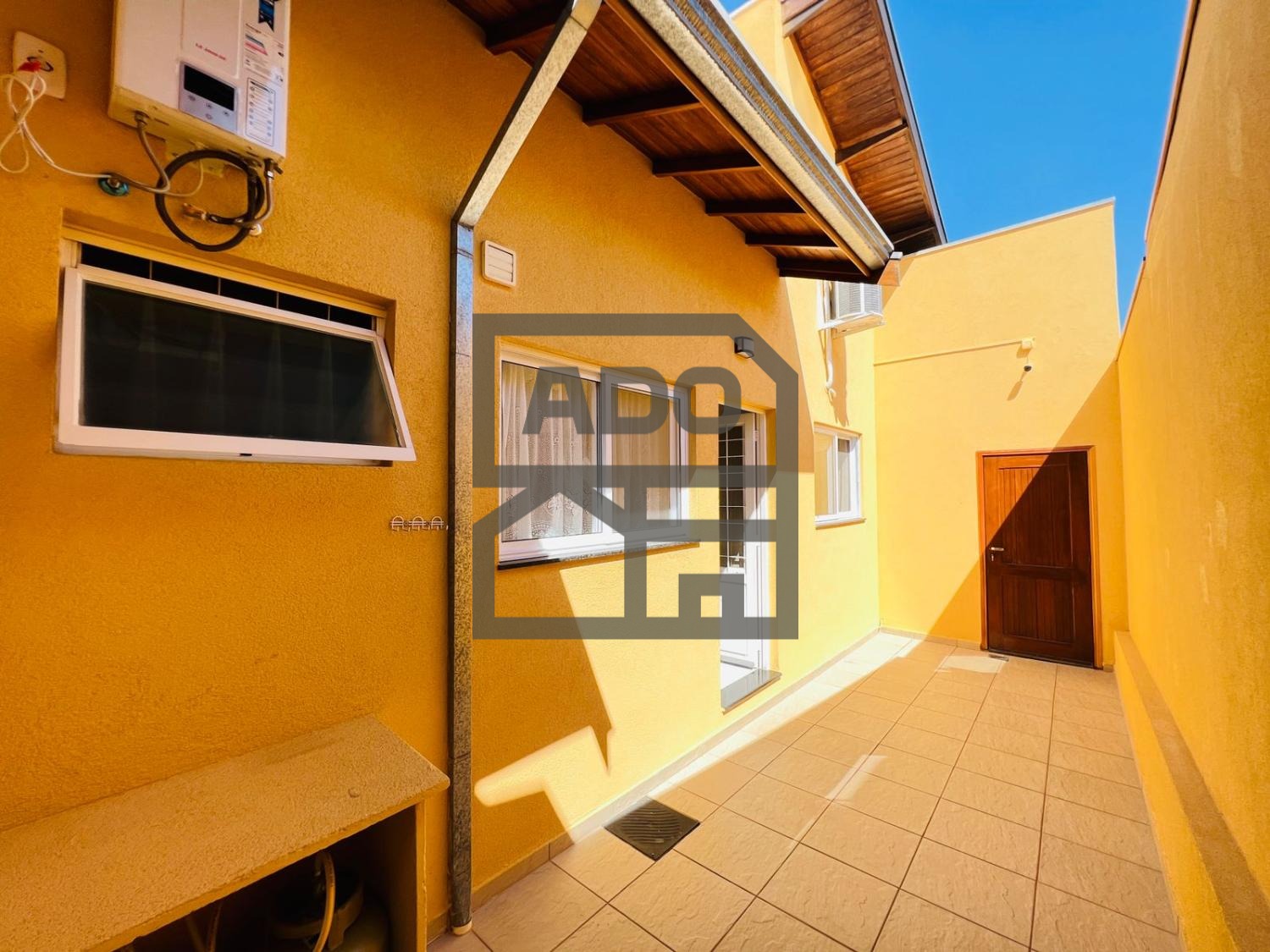 Aquecedor à gás, pia da cozinha com água quente.