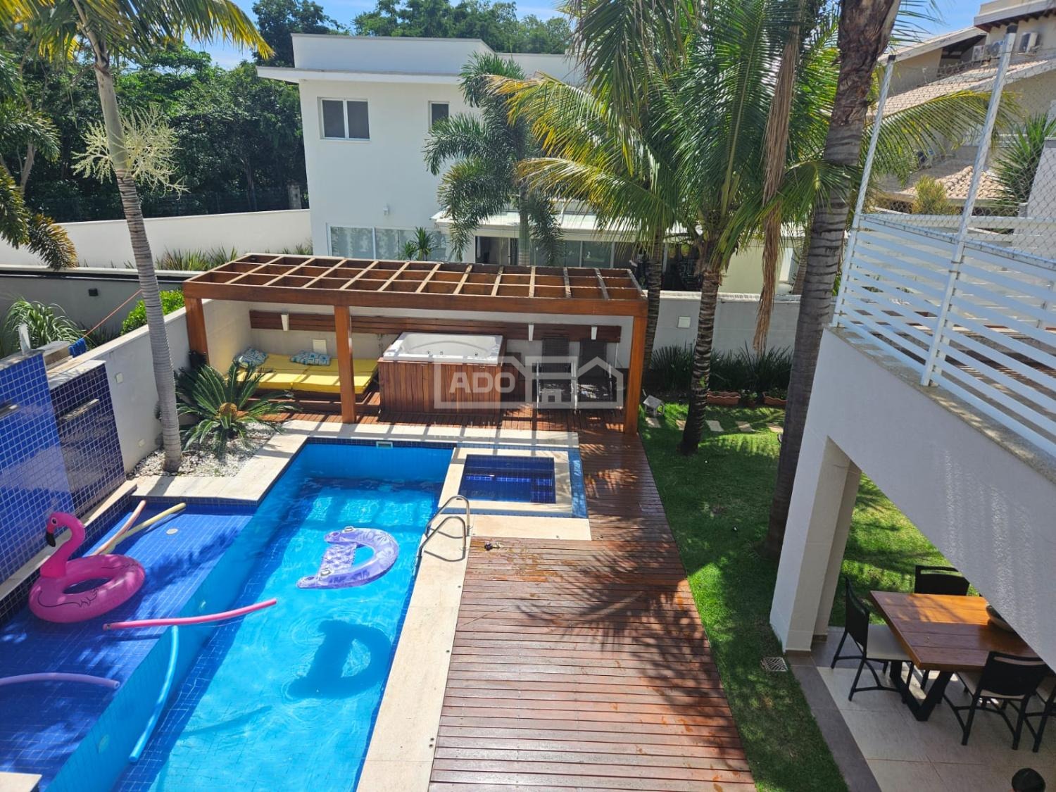 Casa com 3o pavimento, sendo 1o cozinha , sala e grande espaço gourmet com jardim, piscina, ofurô, sauna super moderna.
