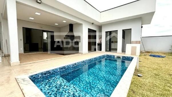 Destaques do imóvel: 3 Suítes com armários planejados, Escritório privativo, Sala ampla com grandes painéis de vidro, Cozinha integrada, Área gourmet coberta com bancada em granito, Piscina com acabamento em vinil, Espaço gramado ideal para pets ou paisagismo, 2 Vagas cobertas + espaço descoberto,
